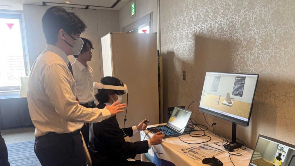 プログラム間の休憩時間には、弊センターの研究や教育に関するポスターをメタバース空間上で展示する取り組みを来場者の方にご紹介し、多くの方にメタバースを体験してもらいました。