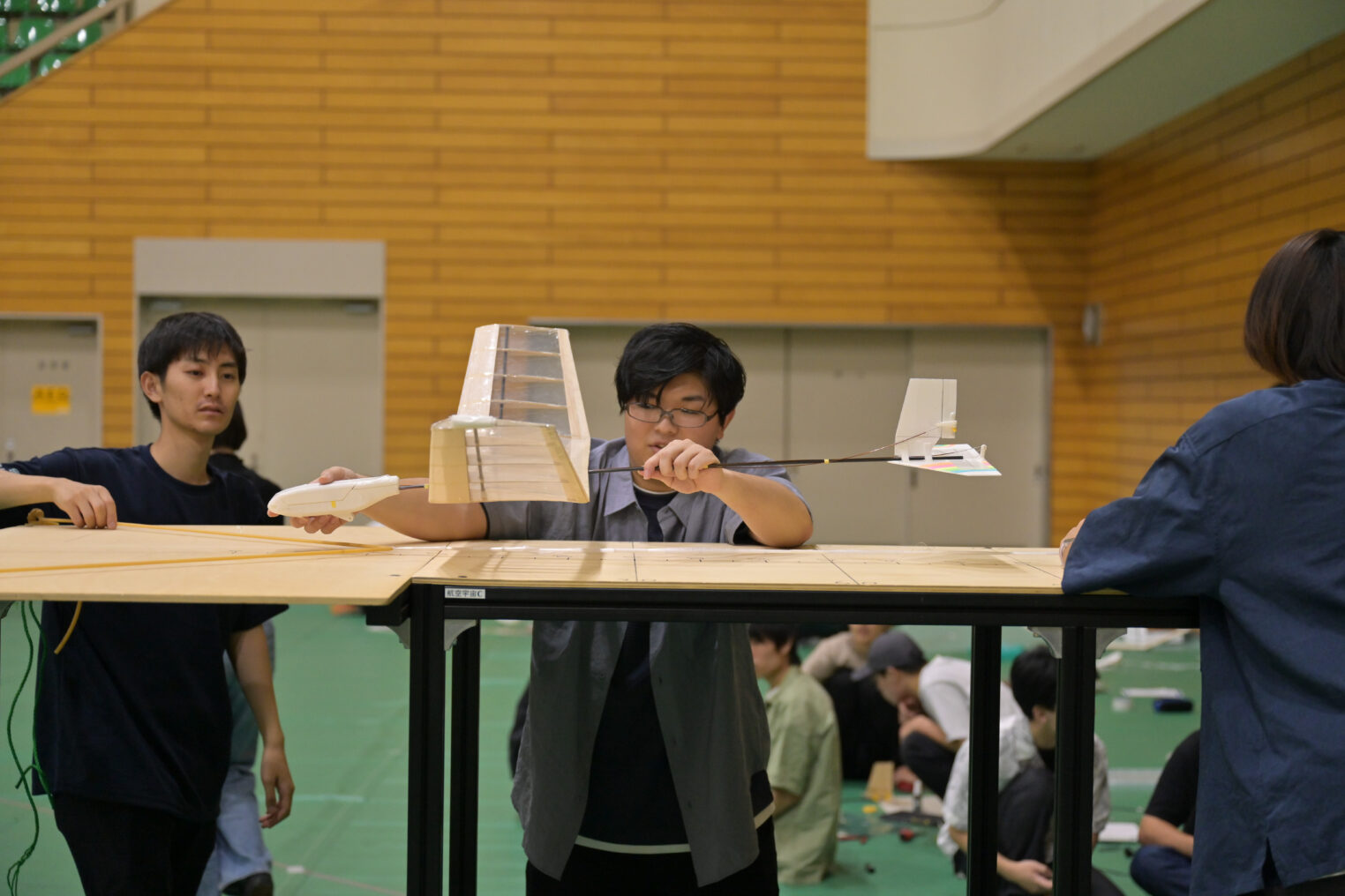 本大会は、岐阜大学 工学部所属の4年生、名古屋大学 工学部所属の3年生を対象とした、飛行ロボット(自律滑空機)を設計・製作する授業より選抜された機体が参加し、今年度は岐阜大学と連携授業を実施している中日本航空専門学校も参加し、どの機体が最も優れた飛行を見せるかを競いました。